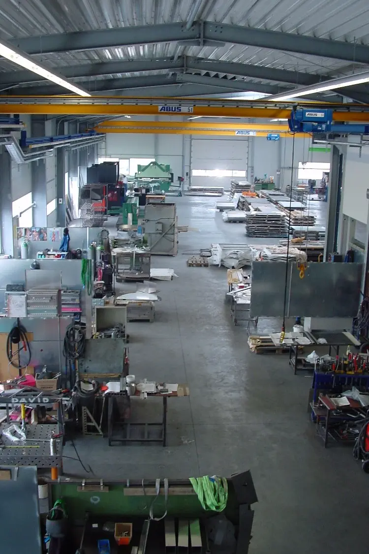 Mit der Investition in Gebrauchtmaschinen konnten wir zwar einige der wachsenden Anforderungen erfüllen, jedoch stießen wir bald an unsere Grenzen. Der Bedarf an umfangreichem Materiallager, leistungsstarken Maschinen und einer modernen Industriehalle wurde zunehmend deutlich.